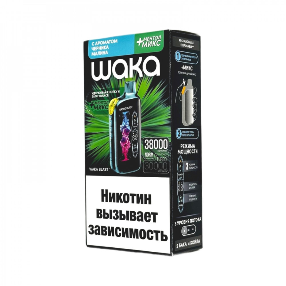 WAKA BLAST 38000 Hard - Черника малина + ментол микс - купить в Хотьково